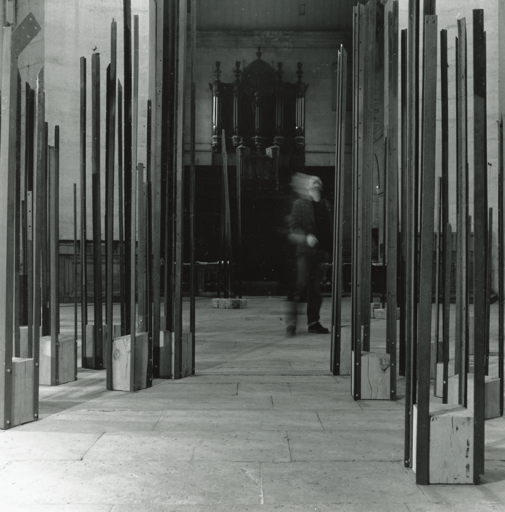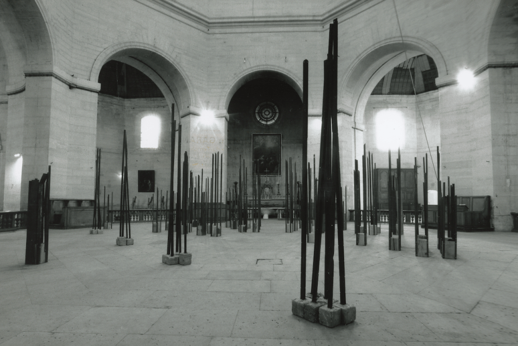 Chapelle de la Salpêtrière à Paris en 1995. Légende : paysage, installation - métal, bois et béton.